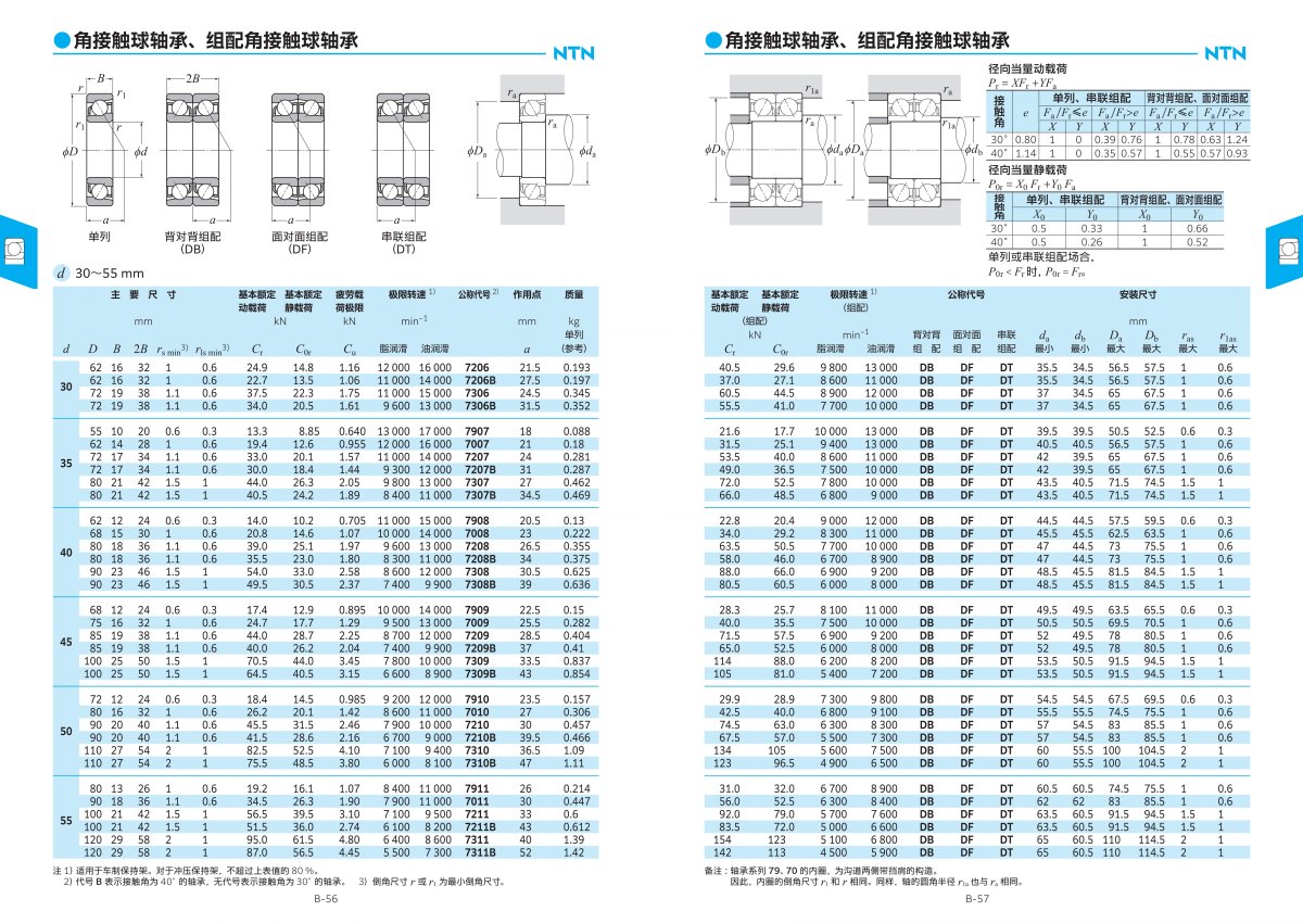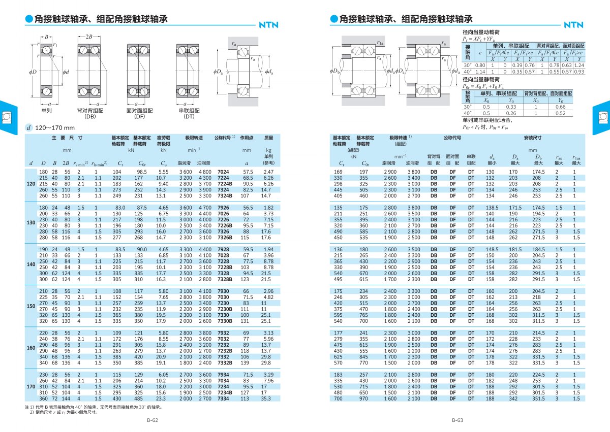5. 易于維護: 許多NTN角接觸球軸承設計為密封式,便于維護和潤滑。