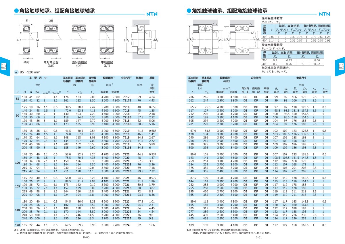 1. 高精度: NTN角接觸球軸承的制造精度大多數情況下非常高,這使得它們在需要高精度定位的應用中表現出色。